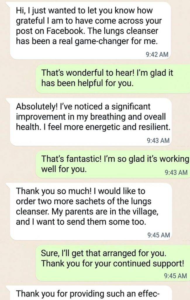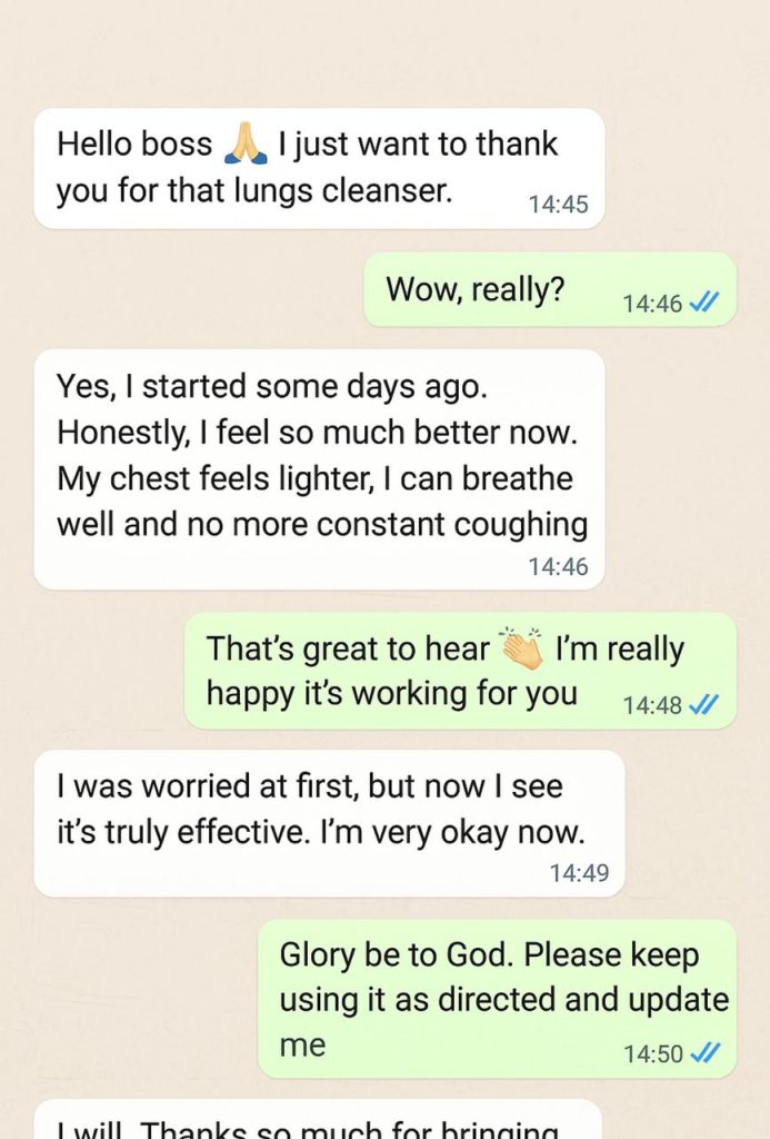 So, all you need to do is get our lung cleanser tea, and you’ll be set free from this, BECAUSE ALL OUR CLIENTS ARE RELIABLE TO LIVE LONG