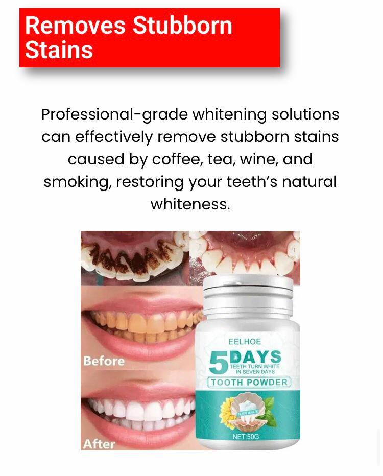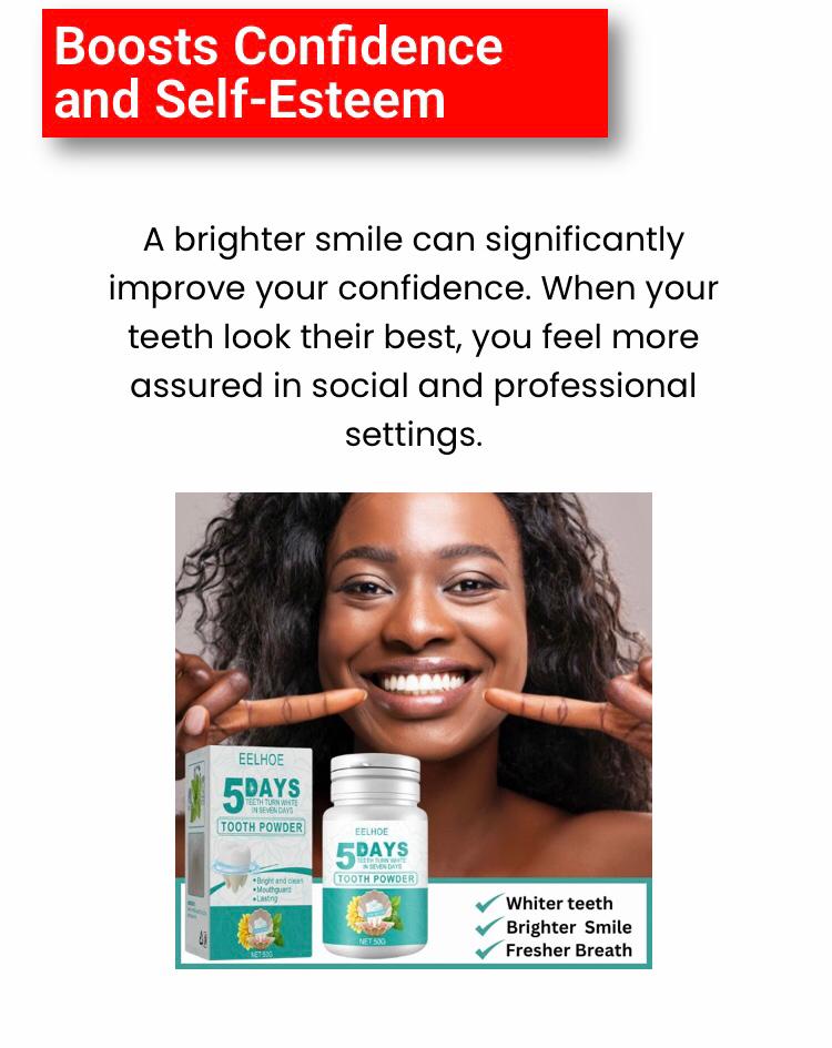 That's why we present to you our tooth whitening powder, designed to tackle these issues and boost your confidence, helping you achieve a healthier, happier smile!